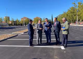 El consejero de Presidencia González Gago (segundo por la izquierda) durante la visita a un nuevo aparcamiento en superficie de Salamanca. - EUROPA PRESS