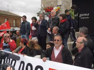 Minutos después, ante al monolito que recuerda a los Comuneros Padilla, Bravo y Maldonado y a los que cayeron en la batalla que se desarrolló en la campa el 23 de abril de 1521, ha querido recordar también la reivindicación de los ciudadanos y vecinos en las calles y ha hecho especial referencia a las protestas en el barrio de Gamonal, en Burgos, que consiguieron paralizar el proyecto de bulevar en la calle Vitoria.