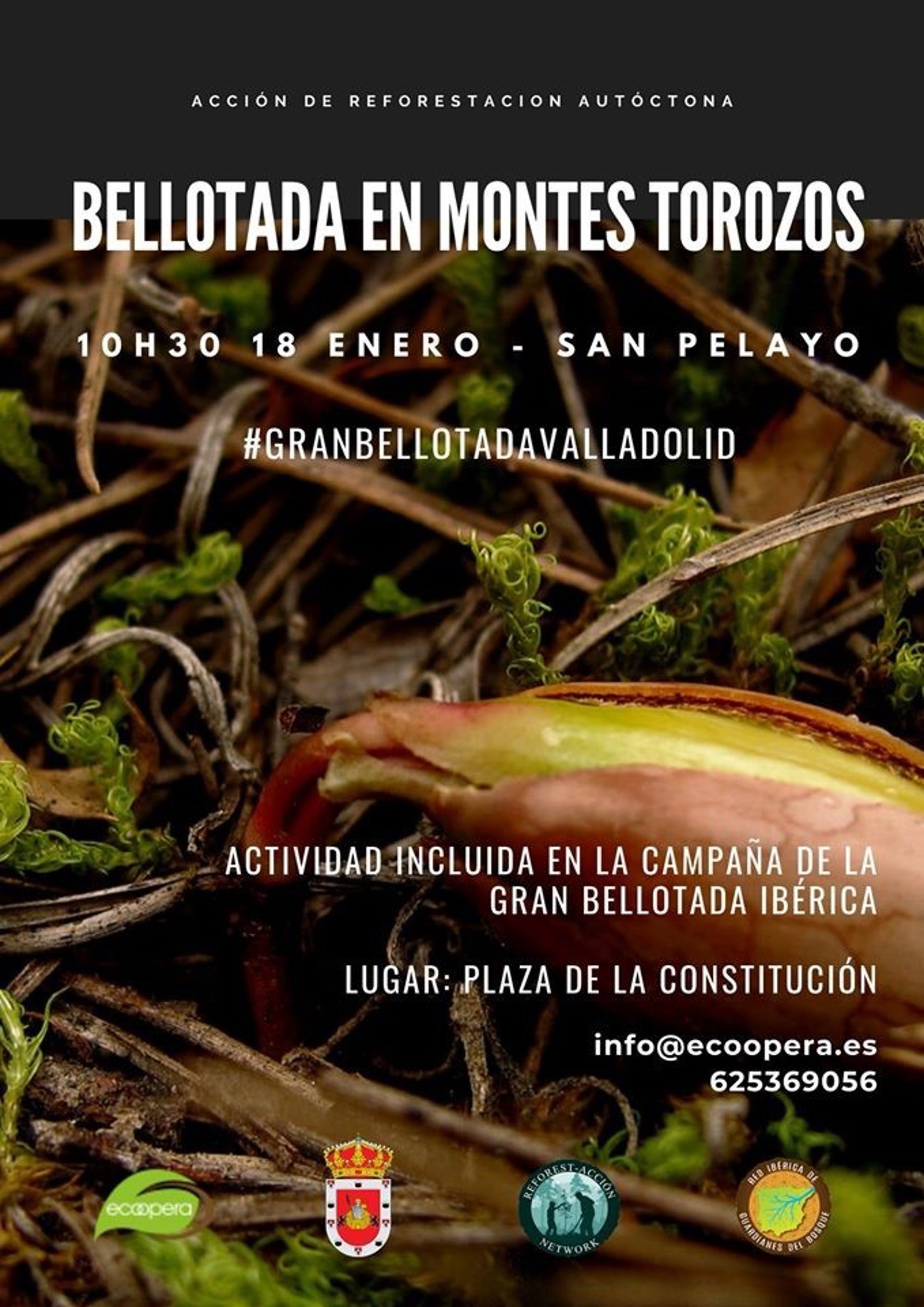La Gran Bellotada Ibérica, el reto colectivo para reforestar la Península Ibérica, llega este sábado, 18 de enero, a la comarca de los Montes Torozos con una acción en el municipio vallisoletano de San Pelayo. El objetivo de estas bellotadas es afrontar la actual crisis climática y frenar la desertificación apoyando la recuperación de los bosques de España y Portugal.
