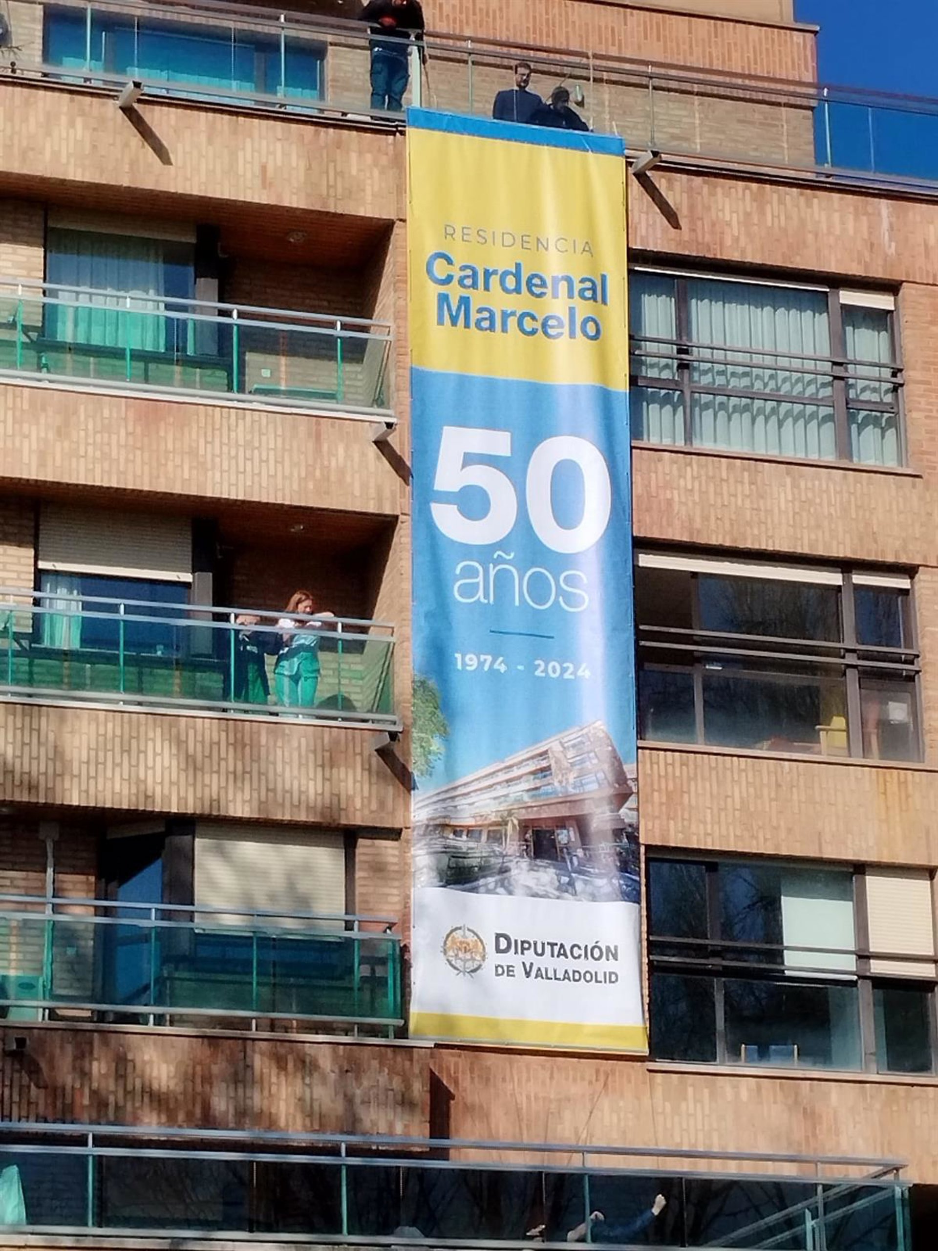 Pancarta que anuncia el 50 aniversario de la residencia Cardenal Marcelo. - DIP VALLADOLID