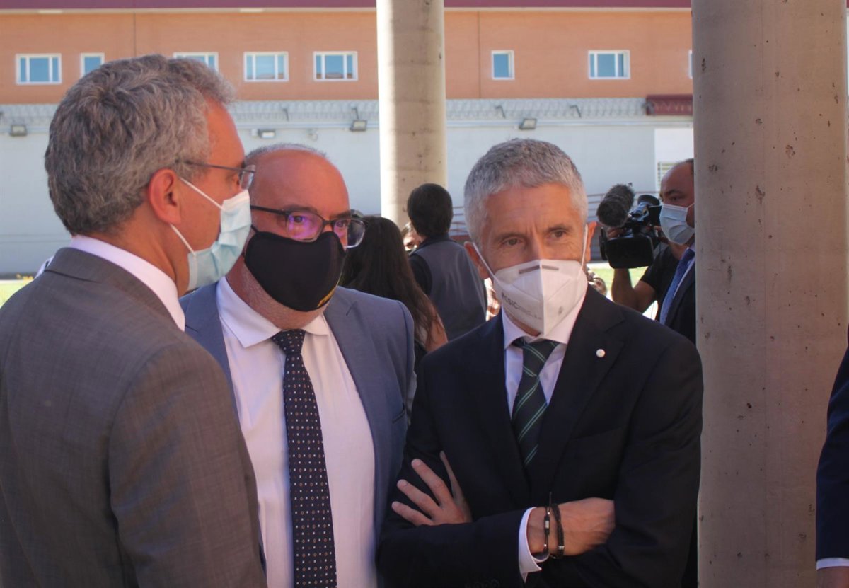 EL delegado del Gobierno en CyL, Javier Izquerdo (I); el subdelegado del Gobierno en Soria y Grande-Marlasca (D) en la nueva cárcel de Soria. - EUROPA PRESS