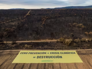 Greenpeace se ha trasladado a la localidad leonesa de Palacios de Jamuz, pueblo que ha resultado afectado por las llamas tras la oleada de incendios de este verano, para desplegar una pancarta de más de un kilómetro cuadrado con el lema 'Cero prevención + crisis climática = destrucción', con la que la organización reclama la necesidad de que las zonas afectadas no caigan en el olvido y que 2025 marque un "verdadero punto de inflexión" en la puesta en marcha de políticas eficaces de prevención frente a incendios de alta intensidad.