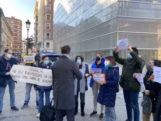 Un grupo de vecinos de Fuentecillas se ha manifestado este viernes a las puertas del monasterio de San Juan, donde se celebraba la sesión ordinaria del Pleno del Ayuntamiento de Burgos, para protestar por la ubicación de las barracas en el barrio.