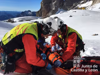 En un primer momento, se traslada al herido hasta el centro de salud de Riaño y, posteriormente, es evacuado al Complejo Asistencial de León en helicóptero medicalizado de Sacyl.