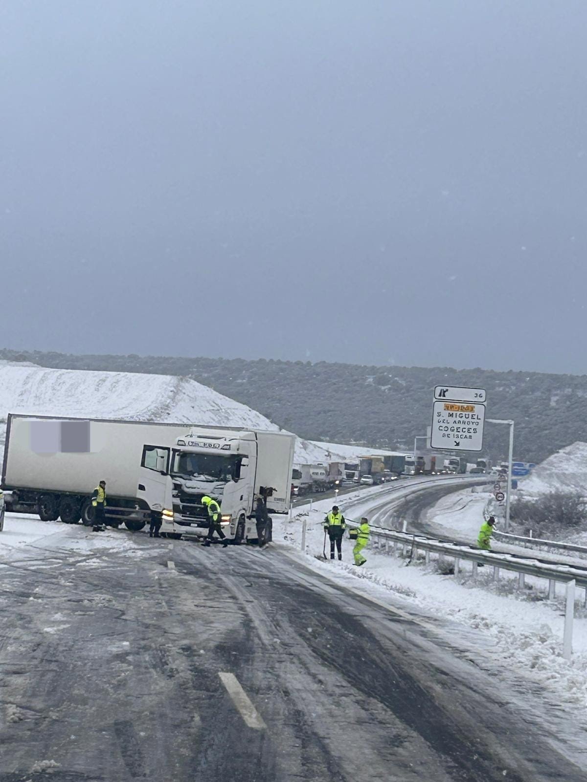 Asimismo, la Guardia Civil ha llevado a cabo el embolsamiento de camiones en la autovía A 62, a la altura del kilómetro 156 en sentido Salamanca, dentro del término municipal de Tordesillas, a petición del Subsector de Tráfico de Salamanca.