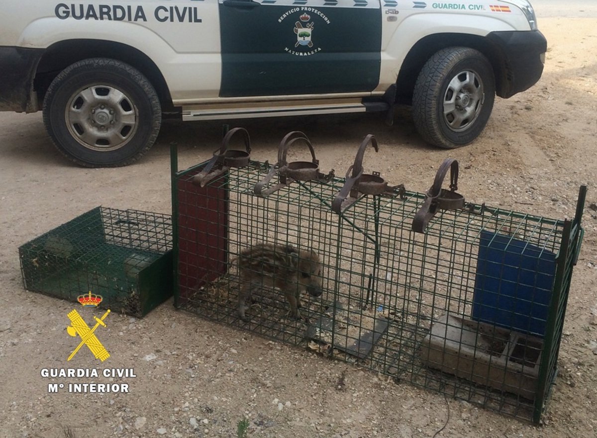 En concreto, en el interior de la jaula se encontraba un "rayón" o cría de jabalí y cuatro cepos, artes prohibidas y vinculadas a la práctica furtiva de la caza.