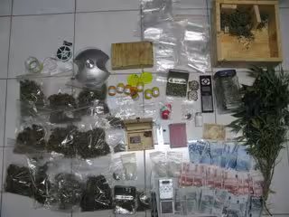 Otros objetos intervenidos son una cizalla, una barra de uña, una planta de marihuana, 650 gramos en cogollos de marihuana, picado de marihuana, bolsas con dosis de marihuana, 25 gramos de hachís, tres gramos de speed, tres básculas de precisión, una navaja de abanico con restos de cocaína, dos picadoras de marihuana, un dosificador, un carrete de hilo de corte, una tabla de corte, cajas de madera y metálicas para guardar droga y 480 euros en metálico.