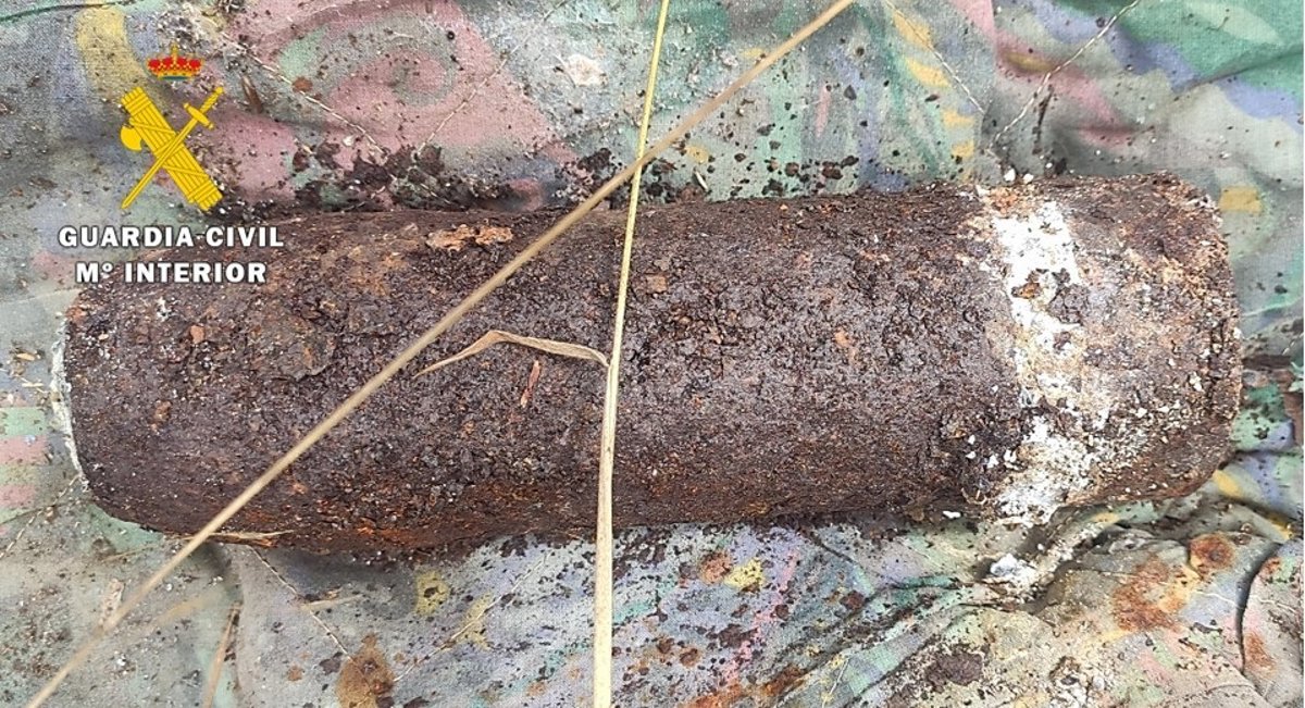 La localización del artefacto, de apariencia antigua y procedencia militar, fue comunicada a la Guardia Civil por una persona que lo halló