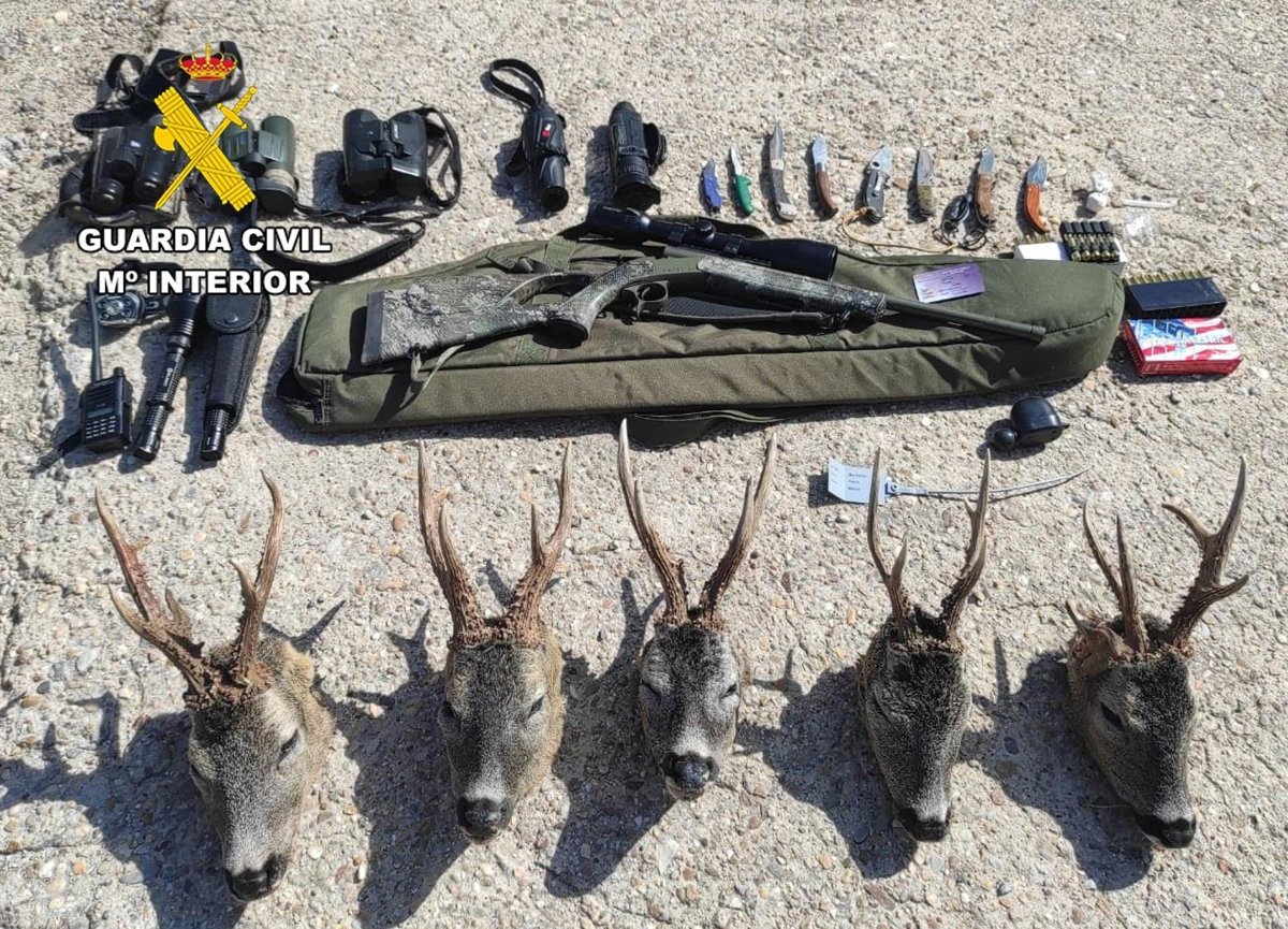 Las pesquisas practicadas han permitido descubrir al principal responsable, al que se le ha levantado acta denuncia por diversas infracciones a la Ley de Caza de Castilla y León; se ha intervenido un rifle con visor y numerosa munición del calibre 6,5 creedmoor, prismáticos, monoculares térmicos, navajas, linternas y otros objetos cinegéticos.