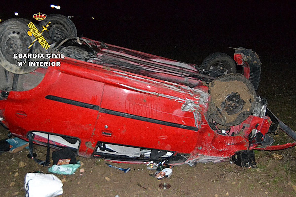 Un turismo se salió parcialmente de la vía por su margen izquierdo y volvió a entrar en la calzada para salirse finalmente de la vía por su margen derecho, donde tras chocar contra una señal vertical de tráfico volcaba en tonel.