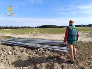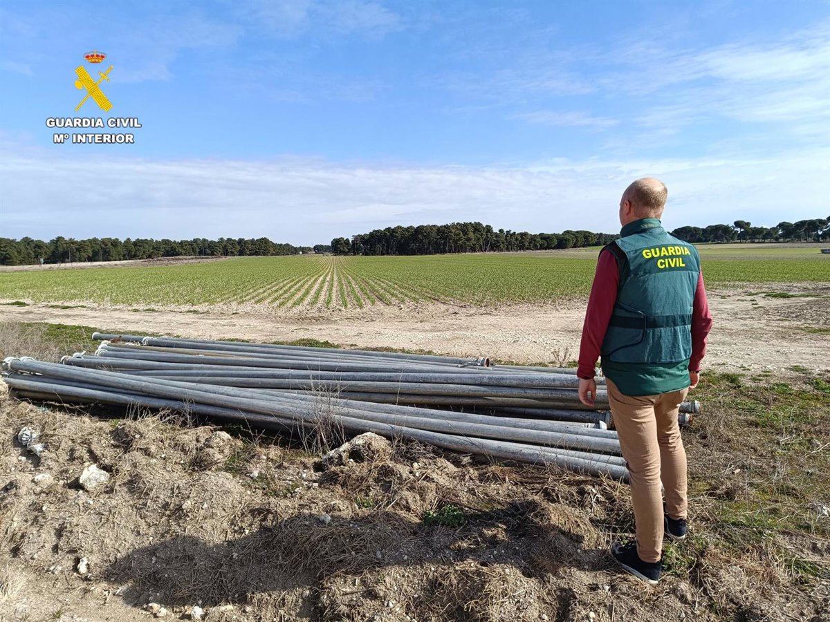 La Guardia Civil de Segovia investiga a un hombre de 46 años, vecino de Viana de Cega (Valladolid), como presunto autor de un delito de hurto de 600 tubos de regadío en el término municipal de Cuéllar, hecho sucedido en diciembre de 2024.
