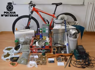 Los agentes, previa autorización judicial, realizaron tres registros domiciliarios en la ciudad, así como en garajes anexos a una de las viviendas, donde se incautaron de dos cargadores de pistola, con munición real (once cartuchos en un cargador y doce en el otro), junto con diversa sustancia estupefaciente y una báscula de precisión. Todo este material apareció en el interior de una maleta y junto a ésta se hallaron varios teléfonos móviles, un bate de béisbol así como útiles para el cultivo de cánnabis.