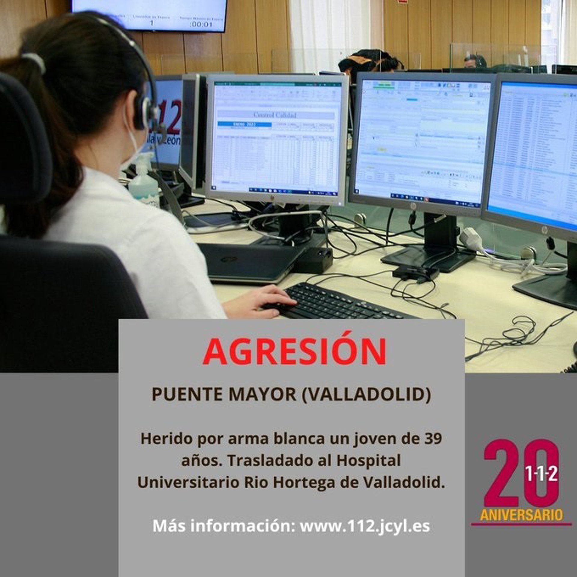 Gráfico elaborado por el 112 con datos sobre la agresión por arma blanca ocurrida en Valladolid - @112CYL