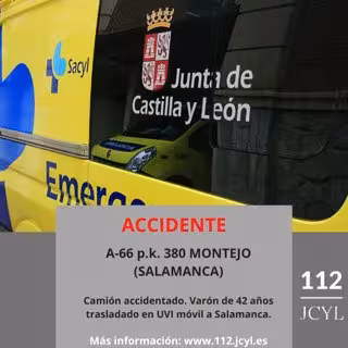 Los hechos han ocurrido a las 00.14 horas de este martes, 24 de mayo, cuando agentes del subsector de Tráfico de la Guardia Civil de Salamanca solicitaron asistencia sanitaria por el accidente de un camión en el kilómetro 380 de la A-66, en sentido Salamanca y a la altura de Montejo. Los agentes indicaron además que el conductor del vehículo se encontraba atrapado en su interior.