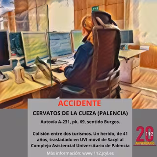 Los hechos han ocurrido esta noche cuando, a las 21.22 horas del lunes 3 de octubre, varios alertantes avisaron de una colisión por alcance de un camión contra otro que se encuentra detenido en el kilómetro 69 de la autovía A-231, en sentido Burgos, a la altura de Cervatos de la Cueza a consecuencia de la cual había resultado herido uno de los conductores, quien se encontraba herido consciente y atrapado en el interior de la cabina del vehículo.