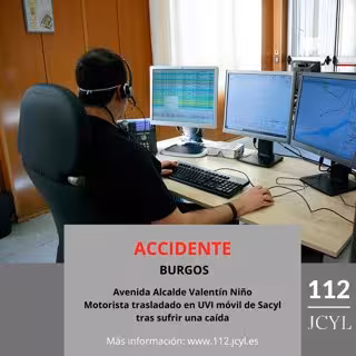El 1-1-2 dio aviso de este accidente a la Policía Local de Burgos y al centro coordinador de urgencias (CCU) de Emergencias Sanitarias - Sacyl, que envió una UVI móvil.