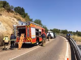 El suceso se ha producido en torno a las 13.30 horas, cuando una furgoneta y una grúa que portaba un turismo han colisionado en esta vía, que ha quedado cortada al tráfico desde la A-62 sentido a la ciudad.
