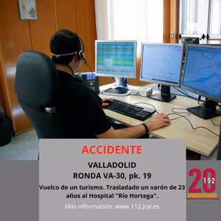 El 1-1-2 avisó de este accidente a la Guardia Civil (Tráfico) de Valladolid, a los Bomberos de Valladolid y al centro coordinador de urgencias (CCU) de Emergencias Sanitarias-Sacyl, que envía una ambulancia de soporte vital básico.