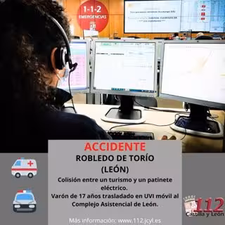 Los hechos ocurrieron alrededor de las 21.02 horas del domingo, 2 de abril, cuando se informó al 112 de una colisión entre un turismo y un patinete en Carretera Santander, junto a la calle Cacerío en Robledo de Torío donde un turismo había colisionado con un patinete eléctrico y había un joven de 17 años que se encontraba inconsciente.
