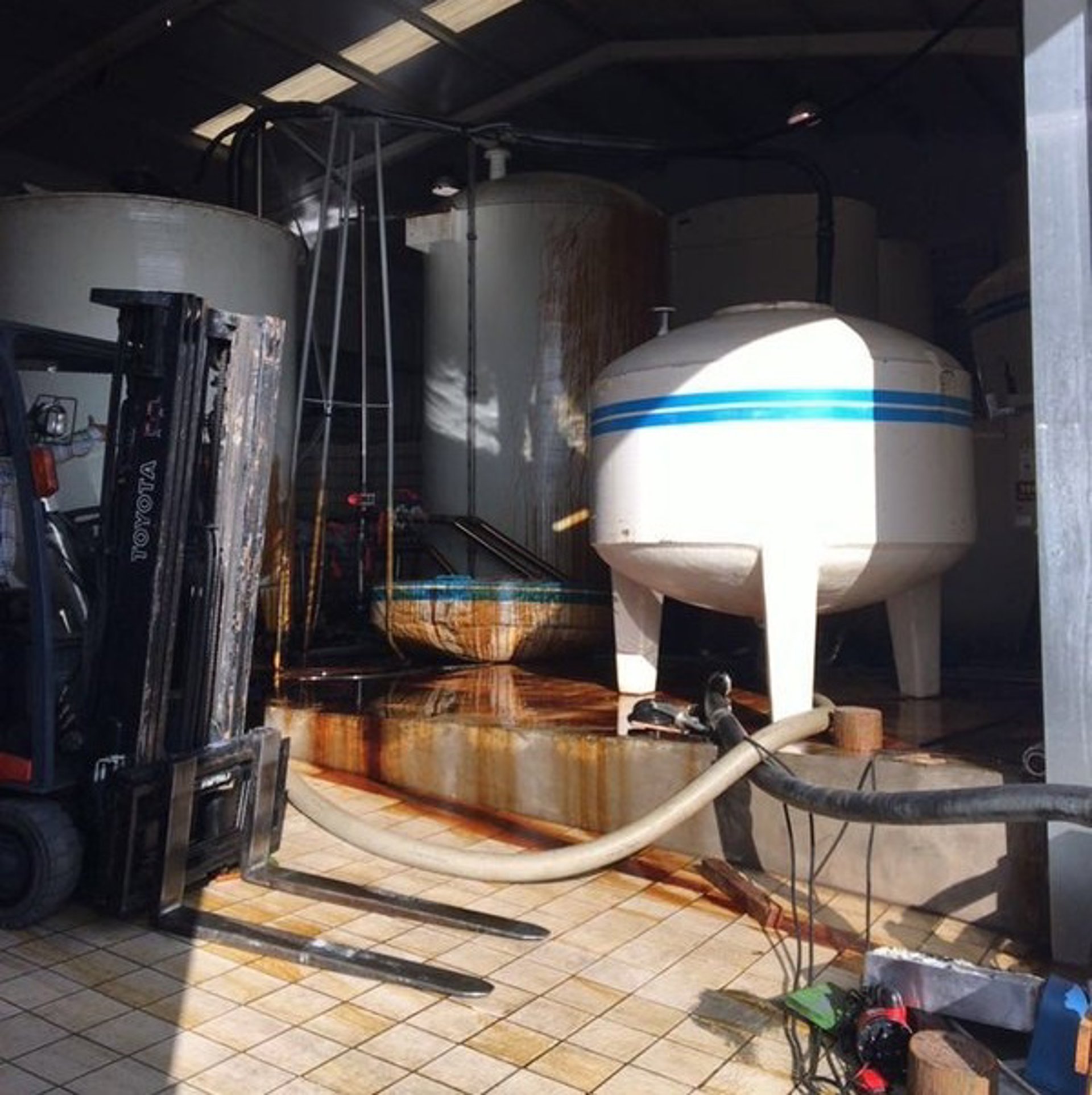El siniestro se ha producido en torno a las 17.20 horas de este martes, cuando se ha producido la rotura de un depósito de melaza de azúcar, que se utiliza para la producción de piensos y se almacena a alta temperatura, en una fábrica situada en la calle Plomo del polígono de San Cristóbal.