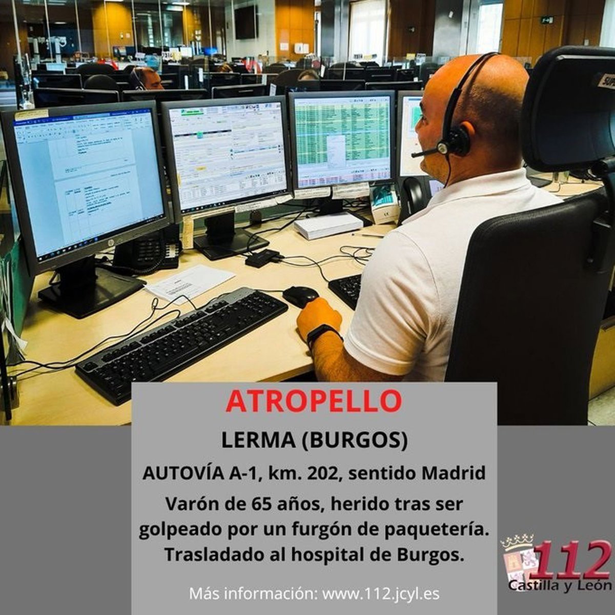 El centro de emergencias comunicó este atropello a la Guardia Civil (Tráfico) de Burgos y al centro coordinador de urgencias (CCU) de Emergencias Sanitarias - Sacyl, que envía una ambulancia de soporte vital básico y personal sanitario de Atención Primaria del centro de salud de Lerma.