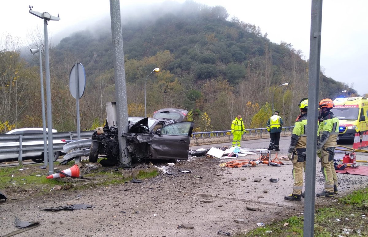 Herido un varón en la colisión de un turismo contra un poste en la A-6 en Villafranca del Bierzo (León) - AYUNTAMIENTO DE PONFERRADA