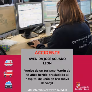 El 1-1-2 dio aviso de este accidente a los Bomberos y la Policía Local de León, al Cuerpo Nacional de Policía y al centro coordinador de urgencias (CCU) de Emergencias Sanitarias - Sacyl, desde el que se envió una UVI móvil.