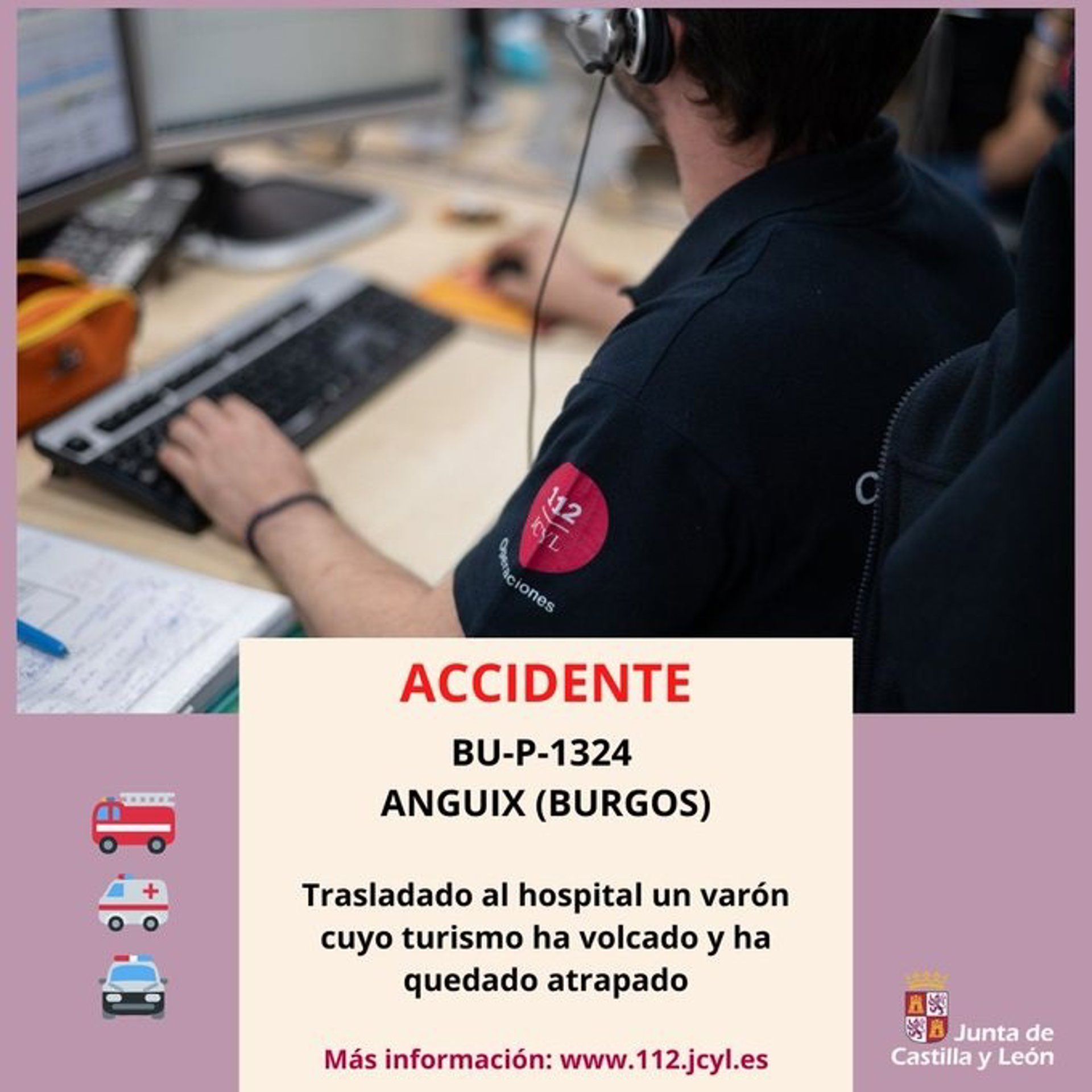 El centro de emergencias 1-1-2 dio aviso de este incidente a Guardia Civil de Tráfico, a bomberos de Burgos, a Bomberos de Aranda de Duero y a Emergencias Sanitarias - Sacyl, que envió una UVI móvil, una ambulancia de soporte vital básico y el equipo médico del centro de salud de Roa.