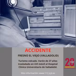 Según los datos aportados por el Servicio de Emergencias de Castilla y León 112 recogidos por Europa Press, el accidente ha ocurrido alrededor de las 06.56 horas de este viernes, 18 de noviembre, cuando se informó del vuelco de un turismo en un camino de Fresno el Viejo que sale de la carretera en dirección a Torrecilla de la Orden accesible para los servicios de emergencia.