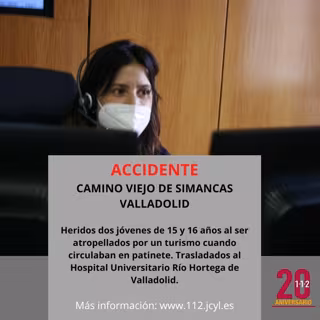 Ya en el lugar, el personal de Sacyl atendió a dos jóvenes, un varón de 15 años que fue trasladado en UVI móvil al Hospital Universitario Río Hortega de Valladolid y un varón de 16 años que fue evacuado en ambulancia soporte vital básico al mismo centro asistencial.