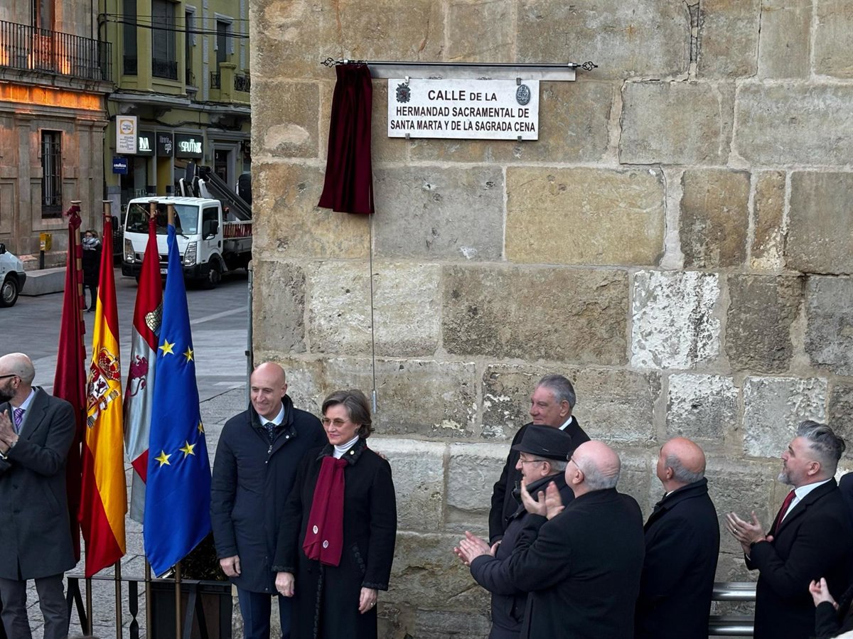 La Hermandad Sacramental de Santa Marta y la Sagrada Cena de León ya cuenta con su rincón en el callejero de la capital leonesa tras el acto de descubrimiento de la placa que se ha desarrollado en la tarde de este viernes.