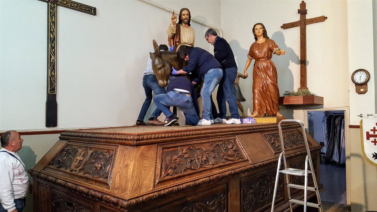 El mismo Domingo de Ramos por la tarde, casi sin descansar, un grupo de cofrades vuelven a la sede de la cofradía para desmontar 'La Borriquilla' y montar en la carroza a 'La Dolorosa'. Éste y otros trabajos que "no se ven" son parte de las cofradías penitenciales de Palencia.