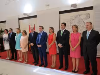 de los miembros de su equipo, formado por la vicepresidenta y consejera de Economía, Rosa Valdeón; de la Presidencia, José Antonio de Santiago-Juárez; de Hacienda, Pilar del Olmo; Agricultrua y Ganadería, Milagros Marcos; Sanidad, Antonio María Sáez Aguado; Familia, Alicia García; Educación, Fernando Rey, y Cultura y Turismo, Josefa García Cirac.