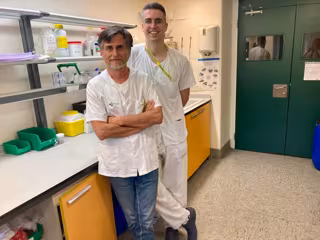 El jefe de servicio de Farmacia Hospitalaria del Caule, Juan José Ortiz Urbina (izquierda) y el farmacéutico Rubén Varela Fernández (derecha), responsables del tratamiento desarrollado para la enfermedad de Menkes. - CAULE