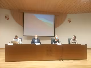 La delegada territorial de la Junta en Soria, Yolanda de Gregorio; el gerente de Asistencia Sanitaria de Soria, Enrique Delgado; la coordinadora del Servicio de Medicina Interna, Marta León, y el neurólogo del Hospital y coordinador de la Unidad de Ictus, Francisco Javier Rodríguez, han explicado este nuevo proyecto que estaba previsto implementarse desde hace meses y que se ha pospuesto por la pandemia.