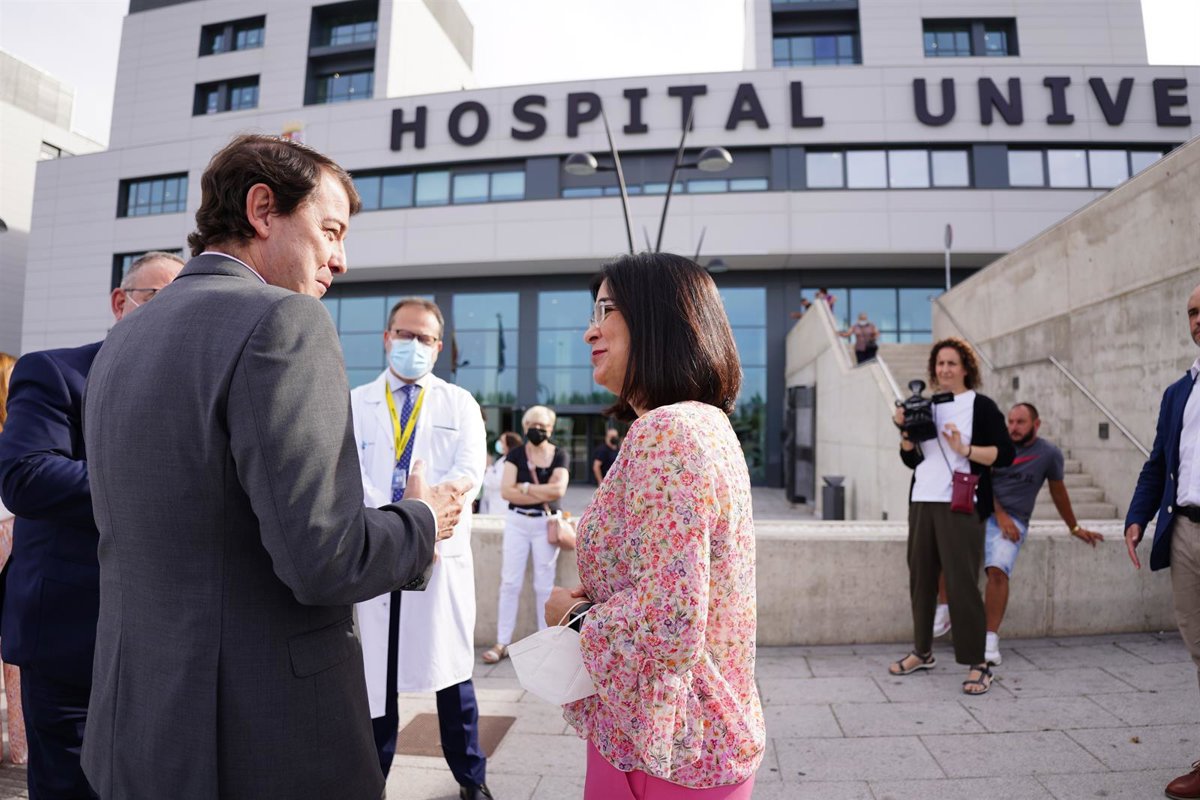 Finalmente, Fernández Mañueco ha agradecido a la ministra de Sanidad su visita a Salamanca, donde ha visitado distintos servicios y unidades que trabajan en el Hospital Universitario.