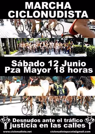 Por ello, animaron a todos los ciudadanos a participar en la movilización al grito de ¡Libera tu mente y tu cuerpo! ¡Disfruta de tu ciudad de una manera diferente! ¡Reivindica tu espacio! ¡Abajo la ropa y arriba la bici! ¡Quema el coche!