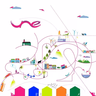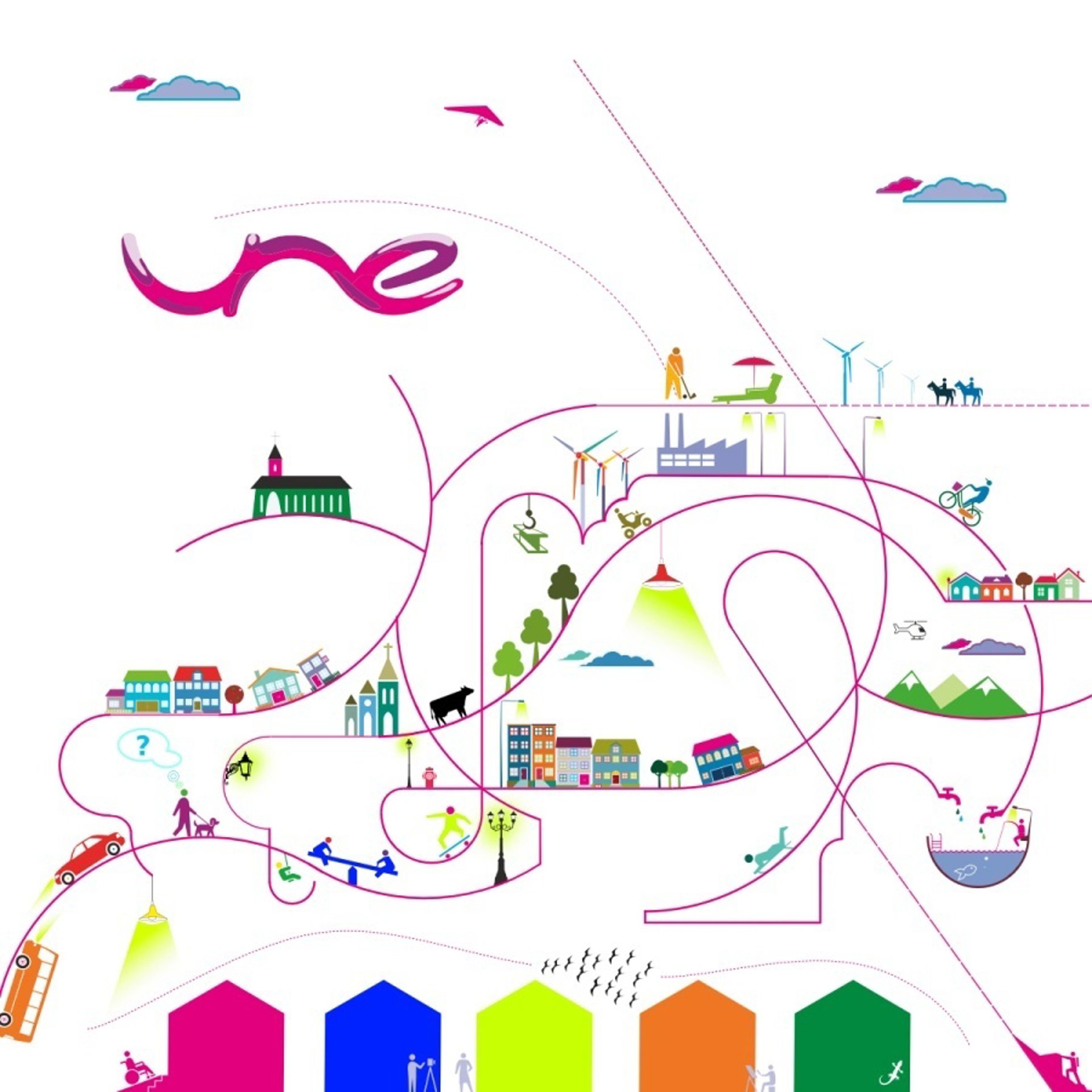 Para Barcenilla, la ilustración es un diseño moderno "lleno de vitalidad y color" con la que quiere "significar los diferentes instrumentos que tienen las comunidades para propiciar espacios de crecimiento económico y desarrollo social y medioambiental, basados en las personas, ayudados por las nuevas tecnologías y aplicando principios como la sostenibilidad, la innovación o el respeto por la diferencia".
