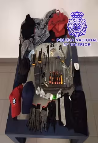 En el registro de los presuntos autores se les intervinieron diferentes herramientas para forzar todo tipo de cerraduras, así como prendas para evitar dejar huellas y ser reconocidos.