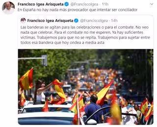 Horas, después, añadía, además a su primer tuit que "en España no hay nada más provocador que intentar ser conciliador".