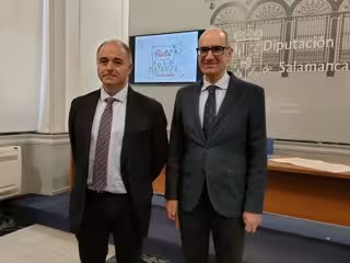 Javier Iglesias (d), junto al diputado de Turismo de Salamanca, Juan Carlos Zaballos (i), en la sede de la Diputación de Salamanca - EUROPA PRESS