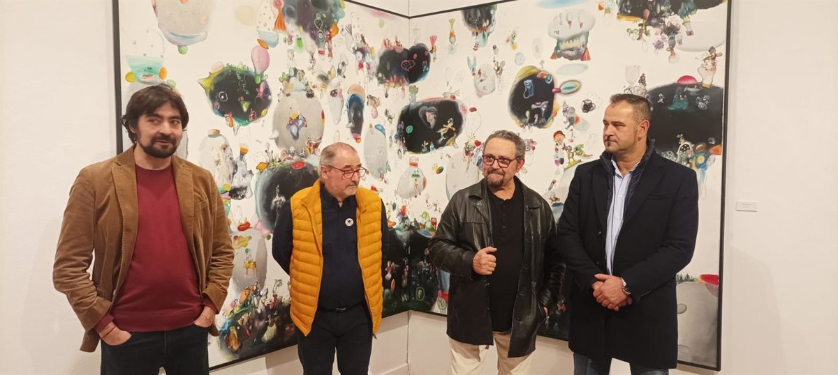En concreto, la Sala Provincia acoge un conjunto de cuarenta pinturas de gran formato cuyas medidas oscilan entre los dos por cuatro metros correspondientes a 'Ingeniería cósmica', de 2018, a los cuadros de metro y medio por metro y medio de 'Complejo mundo de Cervantes', de 2016/17.