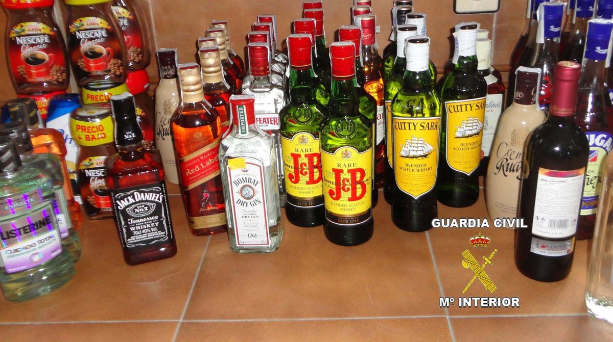 Tras identificar a estos dos individuos y realizar una inspección ocular del maletero del coche, se encontraron ocultas en su interior gran cantidad de botellas de bebidas alcohólicas (41 en total), café y productos de higiene bucal, sin que se pudiera acreditar su procedencia lícita, por lo que les fueron incautadas.