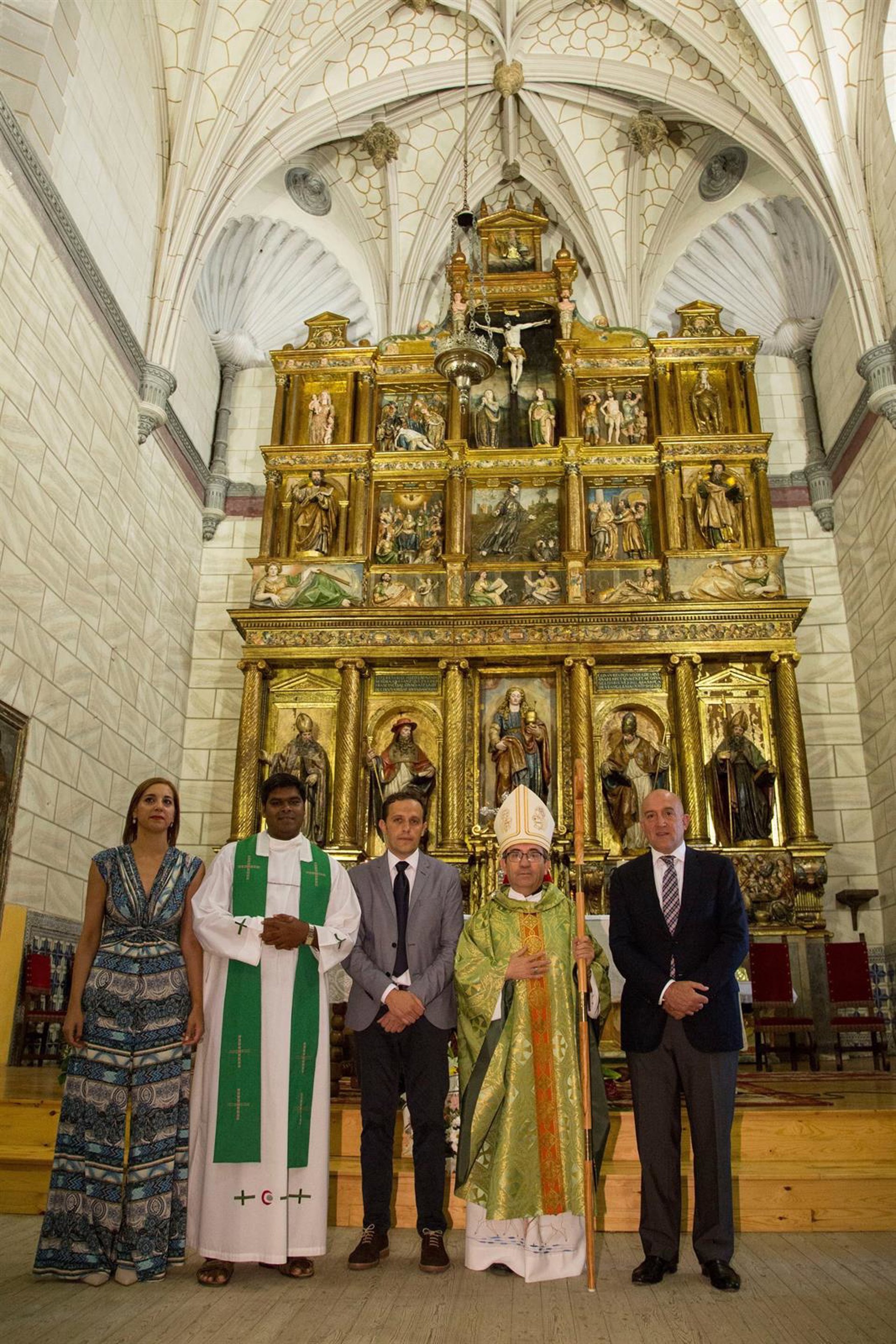 El presidente de la Diputación de Valladolid, Jesús Julio Carnero, acompañado de obispo auxiliar de la Archidiócesis, Luis Argüello, y del alcalde de Matapozuelos, Conrado Íscar, han inaugurado este domingo el restaurado Retablo Mayor de la Iglesia de Santa María Magdalena de Matapozuelos.