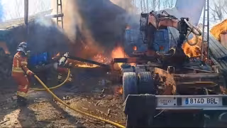 Un incendio declarado este jueves en una nave industrial de la localidad berciana de Almázcara (León) ha calcinado un camión y diversa maquinaria que se encontraba dentro del recinto.