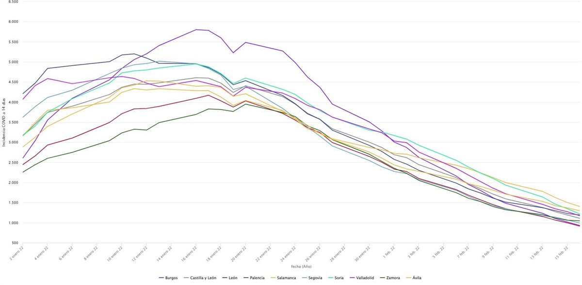 El descenso en este último mes ha sido más intenso en provincias como Burgos, donde en este periodo la tasa ha pasado de 5.801 casos por 100.000 a 931, con un descenso del 83,9 por ciento; o en Segovia, que ha pasado de 4.952 a 992, con un descenso del 80 por ciento; o León, que pasa de 4.093 a 915 (-77,6 por ciento).
