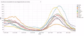 En cambio, en Segovia la incidencia es diez veces menor actualmente, con 206 casos por 100.000 habitantes, que en su peor momento de la tercera ola --2.170 notificado el día 27 de enero--.