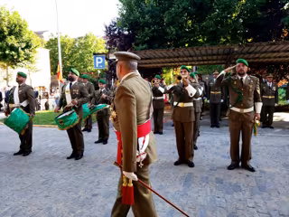 Parque, el coronel Miguel García Santiago. En la tribuna de autoridades estaban presentes el alcalde de Segovia, José Mazarías, y el delegado de la Junta de Castilla y León, José Luis Sanz Merino.