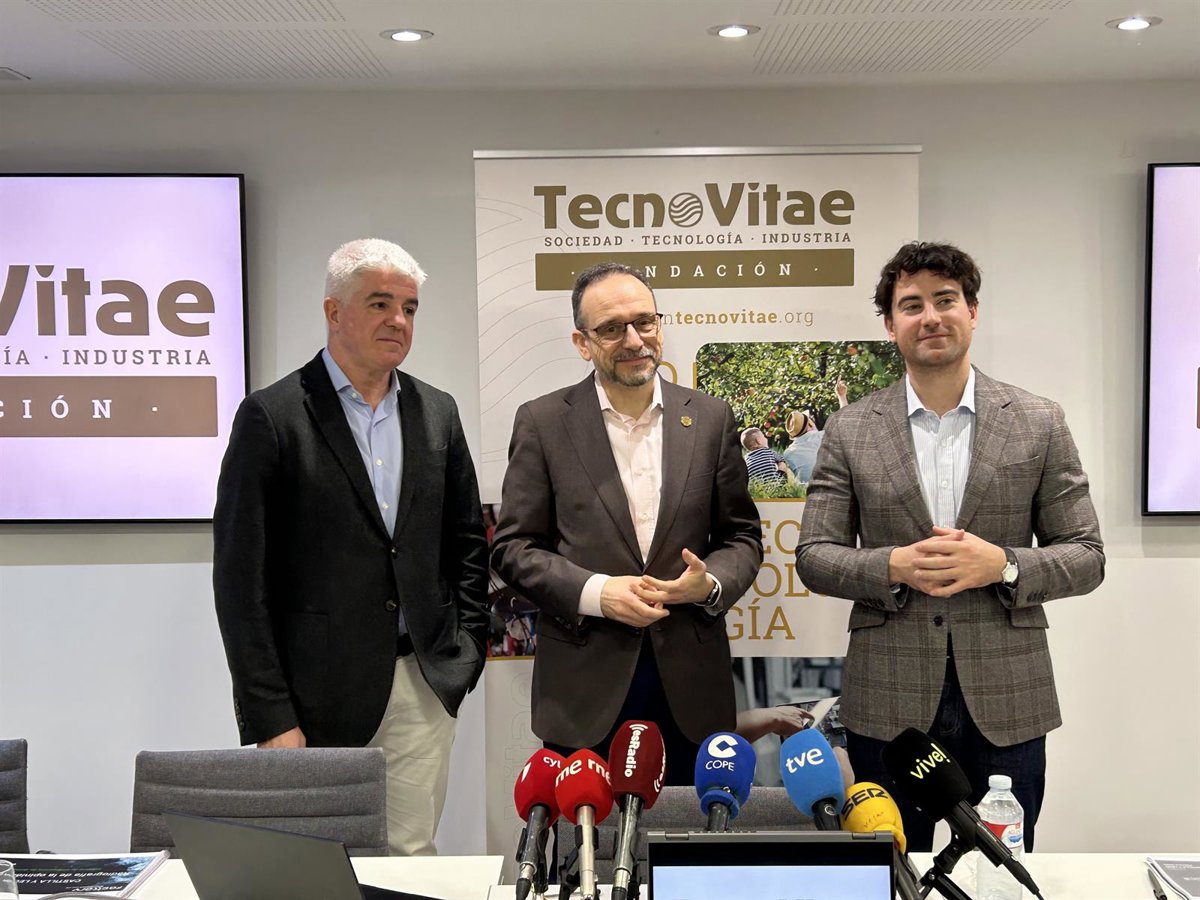 Los miembros de BeConfluence José López (izda) y Álvaro Garrido (dcha) flanquean al director general de la Fundación TecnoVitae, Javier Escribano. - EUROPA PRESS