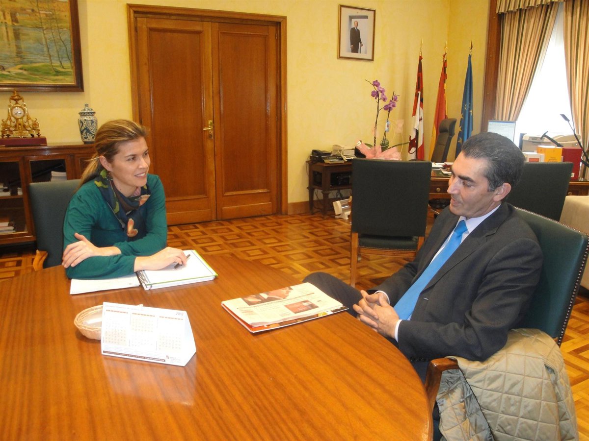 La subdelegada del Gobierno en Zamora, Clara San Damián, ha recibido esta mañana al presidente de la CEOE-Cepyme de Zamora, Ángel Herrero Magarzo, con quien ha tratado sobre diversos asuntos de interés para el desarrollo provincial, especialmente los relacionados con las obras de las grandes infraestructuras (autovías y tren de alta velocidad) y con la necesidad de seguir impulsando la creación de suelo industrial en Zamora a precios más asequibles.